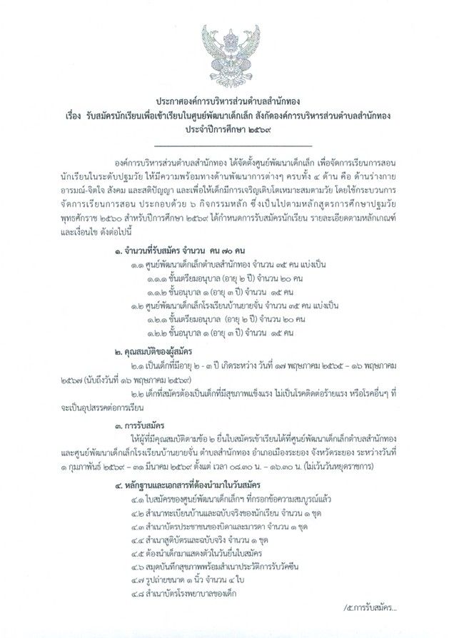 ประกาศ รับสมัครนักเรียนเพื่อเข้าเรียนในศูนย์พัฒนาเด็กเล็ก สังกัดองค์การบริหารส่วนตำบลสำนักทอง ประจำปีการศึกษา 2569 วันที่ 11 กุมภาพันธ์ 2569 [ 09:38 น. ] เข้าชม 10 ครั้ง พิมพ์ ย้อนกลับไปที่ : ข่าวประชาสัมพันธ์ หัวข้อ : ประกาศ รับสมัครนักเรียนเพื่อเข้าเรียนในศูนย์พัฒนาเด็กเล็ก สังกัดองค์การบริหารส่วนตำบลสำนักทอง ประจำปีการศึกษา 2569 อัลบั้มภาพ